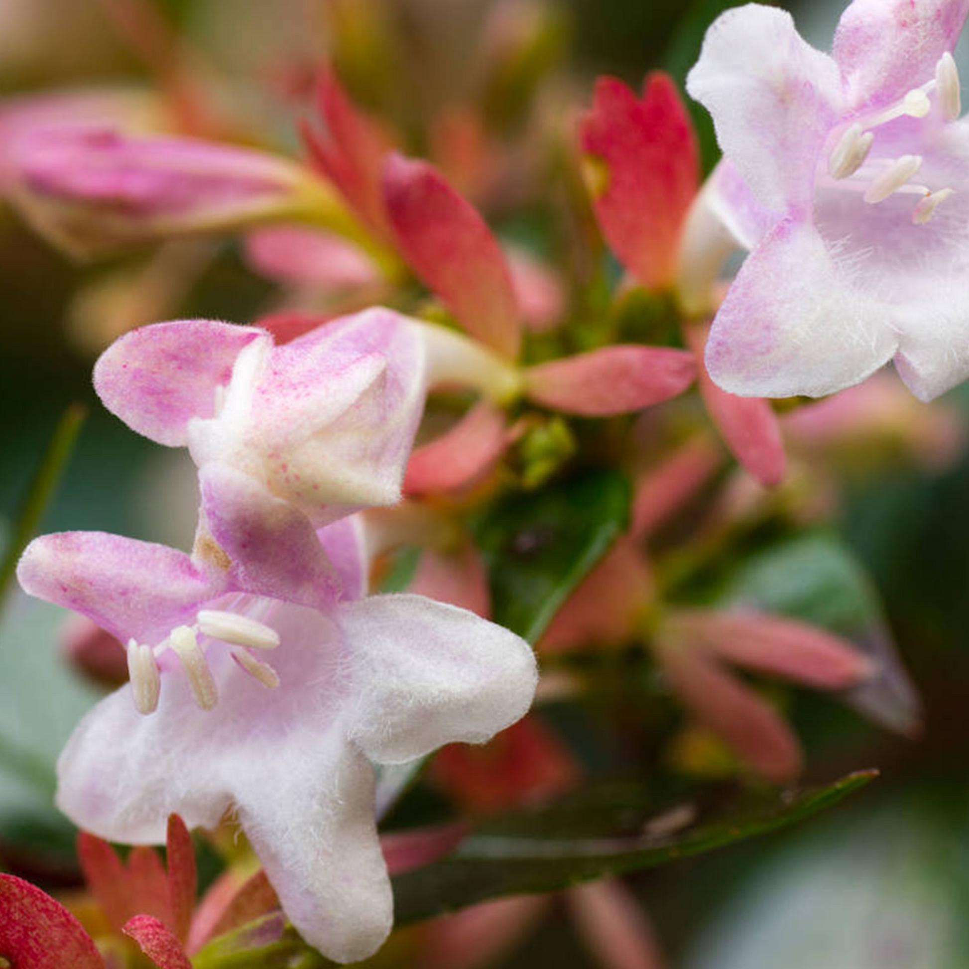 Abelia ‘Edward Goucher’ is an attractive and colourful shrub with graceful arching stems carrying beautiful bronze tinged leaves that mature to a deep, rich green along with clusters of lilac-pink, funnel-shaped flowers which appear throughout the Summer and into the beginnings of Autumn. The colder months bring a deep hue of bronze-purple to the foliage providing lovely Autumn colours to the garden.