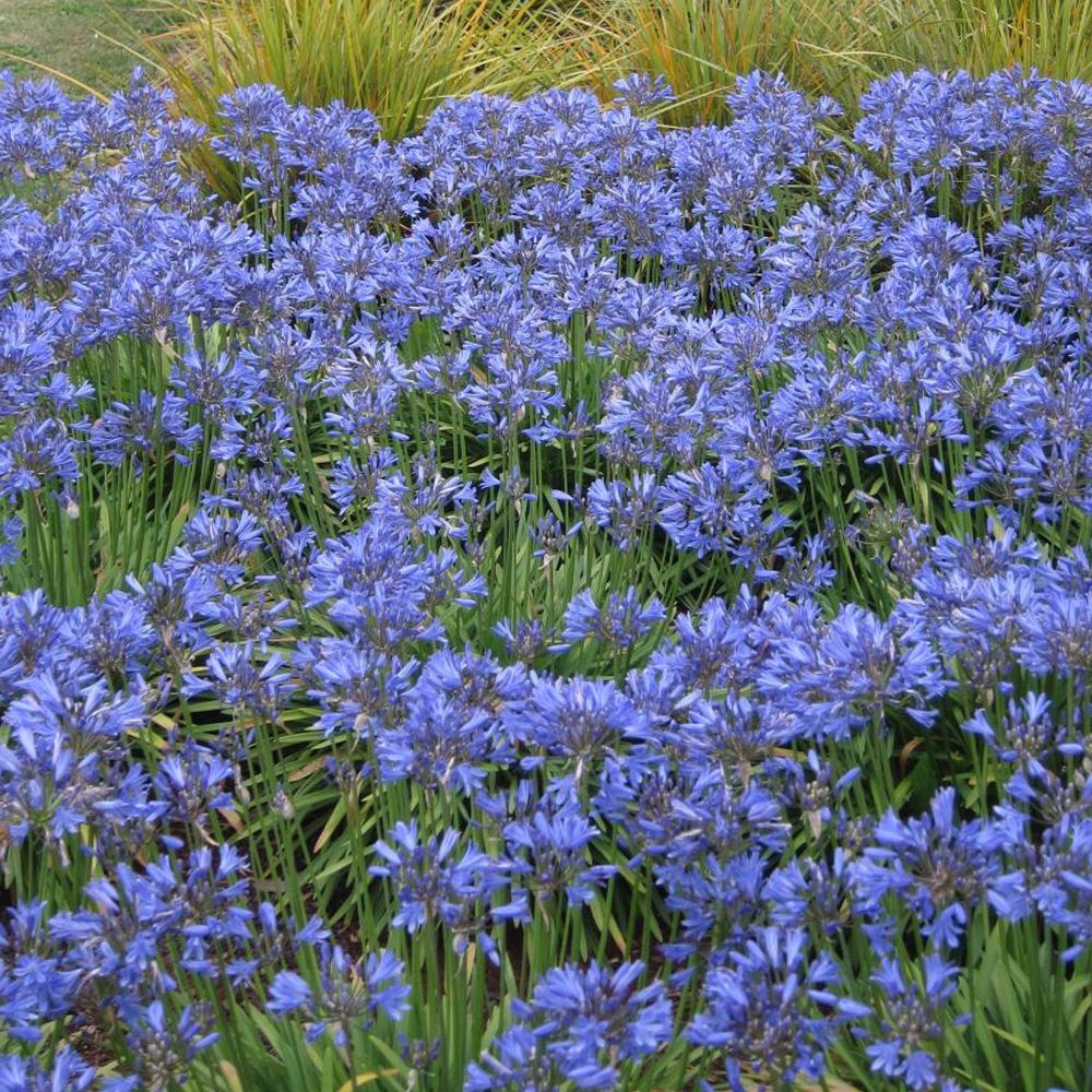 Agapanthus 'Seastorm' creates an explosion of summer colour from June to August. Rounded heads of starry, violet-purple flowers are balanced atop stiff, upright stems which make superb cut flowers. This eye-catching African Lily is free flowering, boasting more stems per plant than traditional varieties. Strap-like, semi-evergreen foliage provides effective summer ground cover, even in dry, drought-prone soils. A lovely choice for planting en masse throughout beds and borders, or filling patio pots with summer colour.