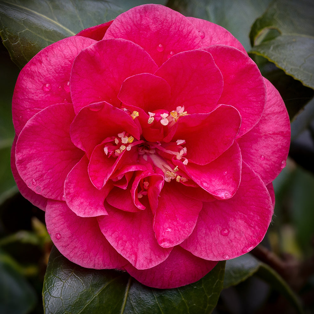 Camellia are evergreen shrubs with simple, ovate, glossy, leathery leaves and showy flowers with solitary or clustered flowers early in the year