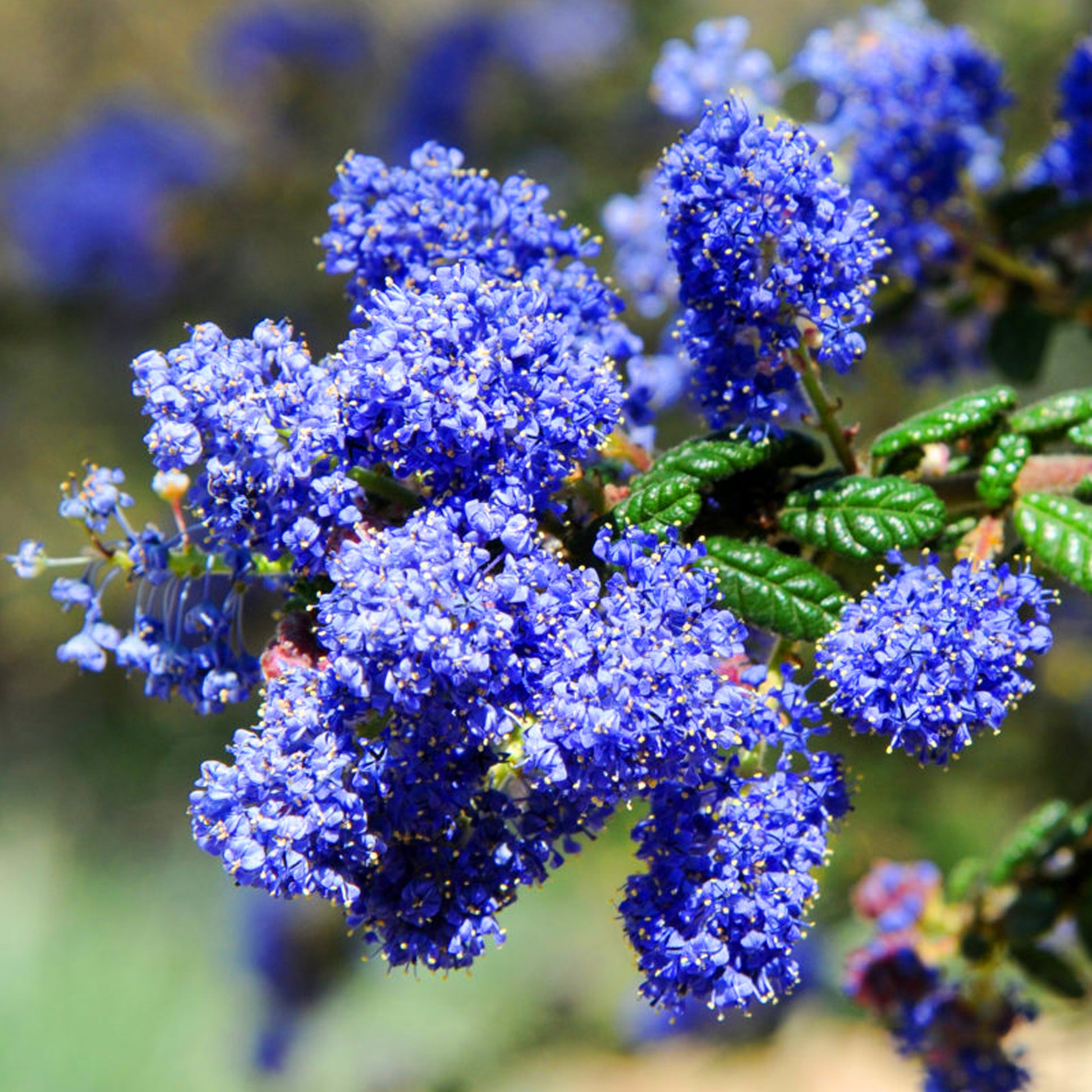 A very showy variety of Ceanothus with dense flowering throughout the foliage. The Ceanothus ‘Dark Star’ is a spreading, evergreen species of Californian Lilac with ovate, dark green leaves and striking deep blue flowers which appear in all over the plant in rounded clusters from late Spring. The tiny, richly coloured flowers are quite fragrant and contrast nicely with the darker foliage surrounding them. A great low maintenance shrub suitable for most positions including coastal areas.