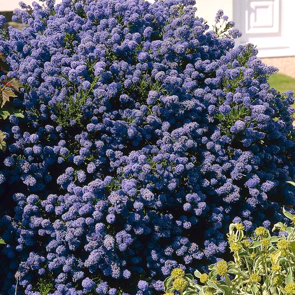 Ceanothus ‘Puget Blue’ Is a hardy breed of Californian Lilac and is known for its dense growth of flowers. During the Spring and the beginning of Summer large clusters of rich blue flowers grow thick and fast all along the arching branches in stark contrast to the small, dark green leaves of its foliage. ‘Puget Blue’ is a great asset to any garden, providing vibrant Spring colour as part of wall borders, informal hedges or low screening.