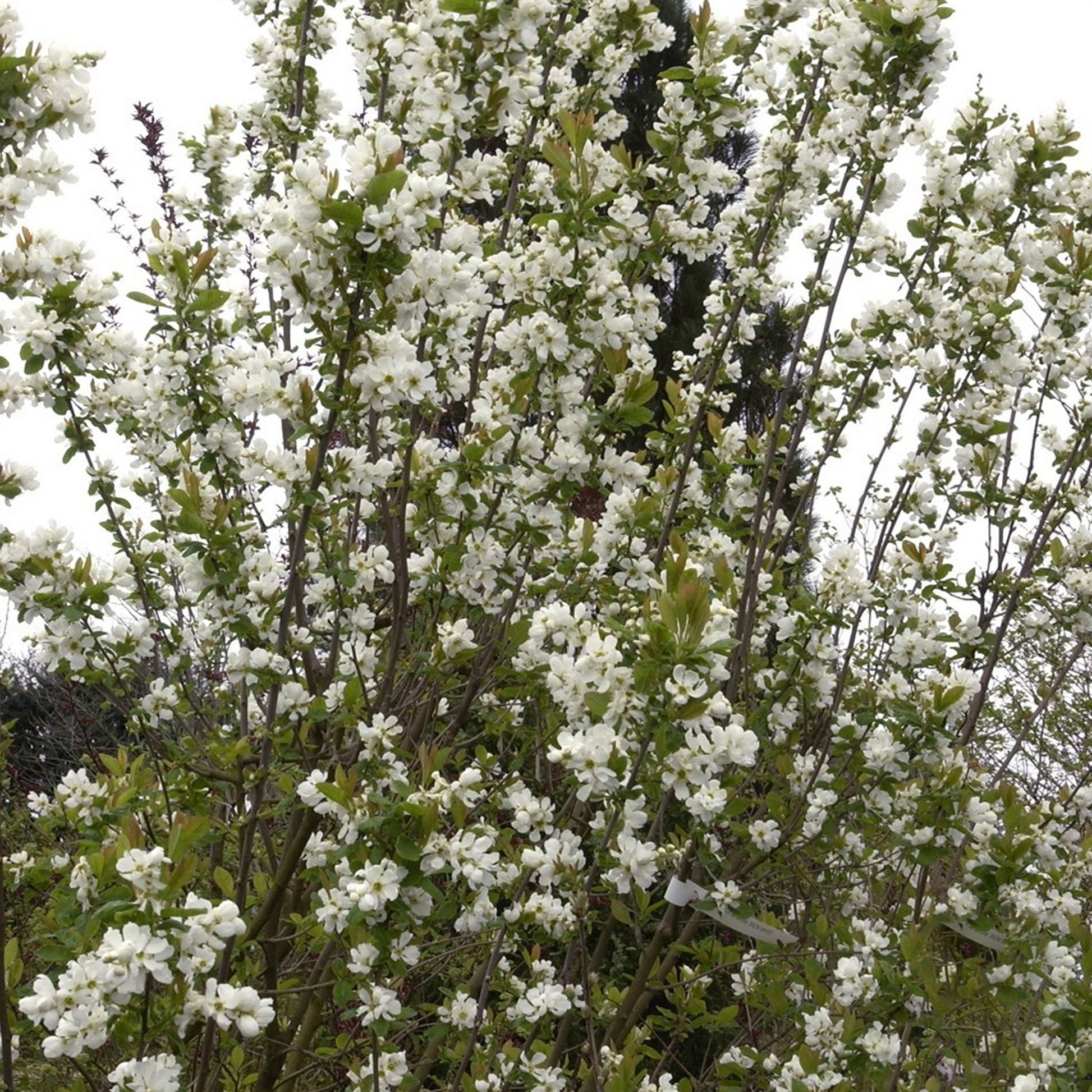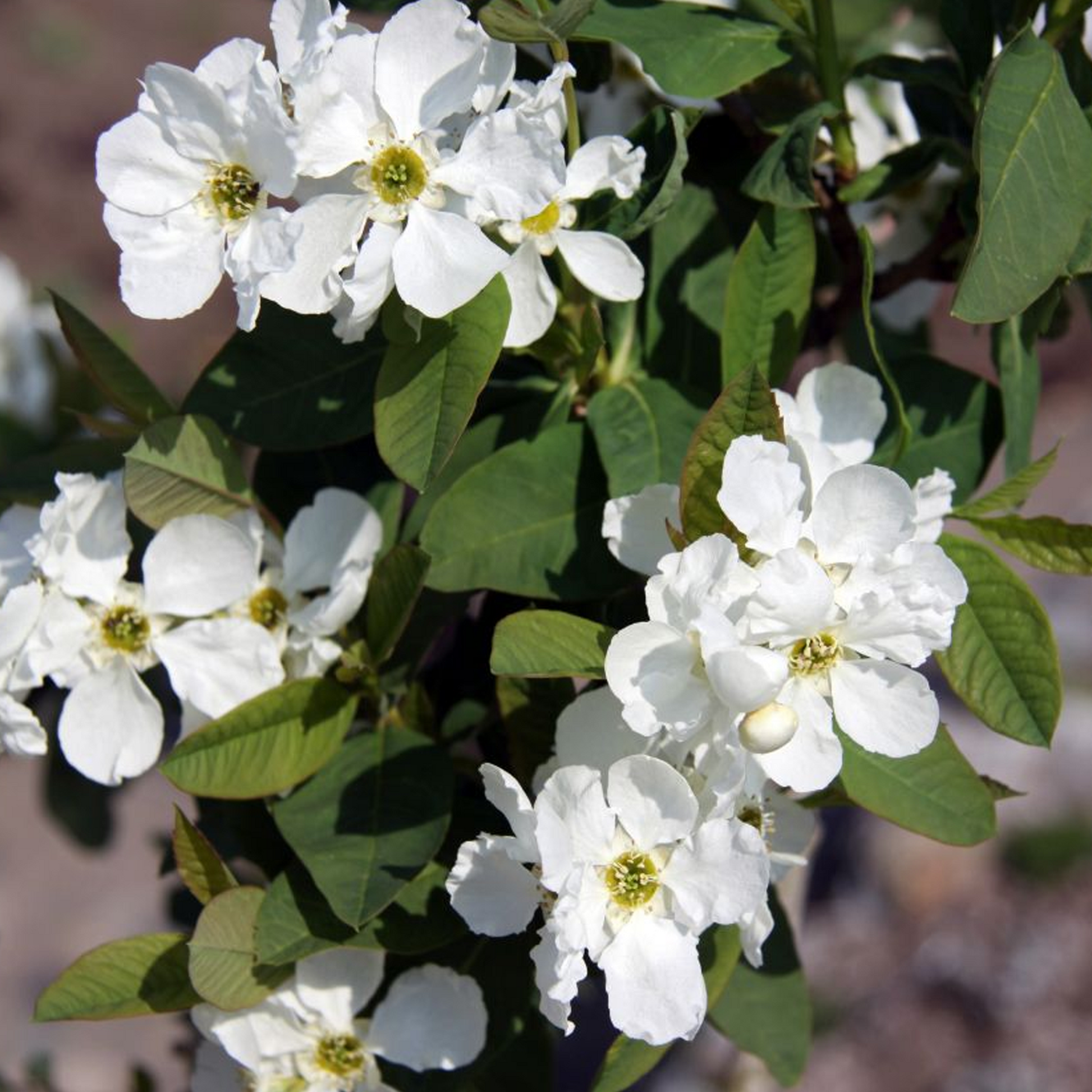 Exochorda serratifolia ‘Snow White’ is a compact, deciduous tree sometimes referred to as Pearl Tree or Pearl bush. The name is a reference to the buds of pure white that appear all along the arching branches in the early spring like so many masses of pearls, which then bloom into large white flowers drooping slightly beneath the branches. The flowers are resilient, coping well with the lingering frosts that can sometimes carry on through to Spring.