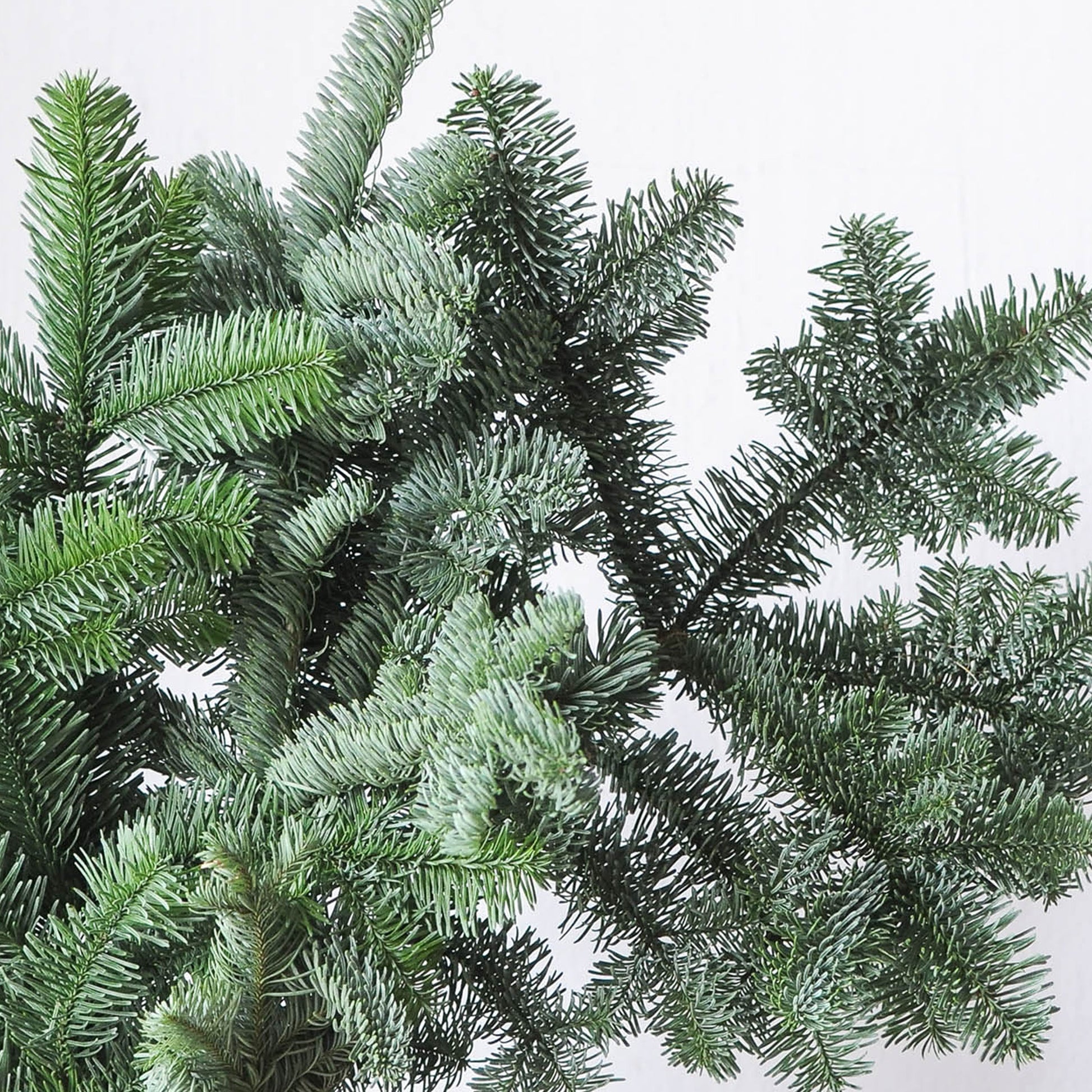 Noble fir is renowned for its excellent needle retention, so you don’t need to worry about your decorations looking tired before the end of the festive season. Maintain the greenery’s freshness by misting it regularly, ensuring that the needles on the front and back of the decoration can absorb the moisture. Place your Christmas foliage in a cool spot away from heat sources like radiators and keep out of strong winds.