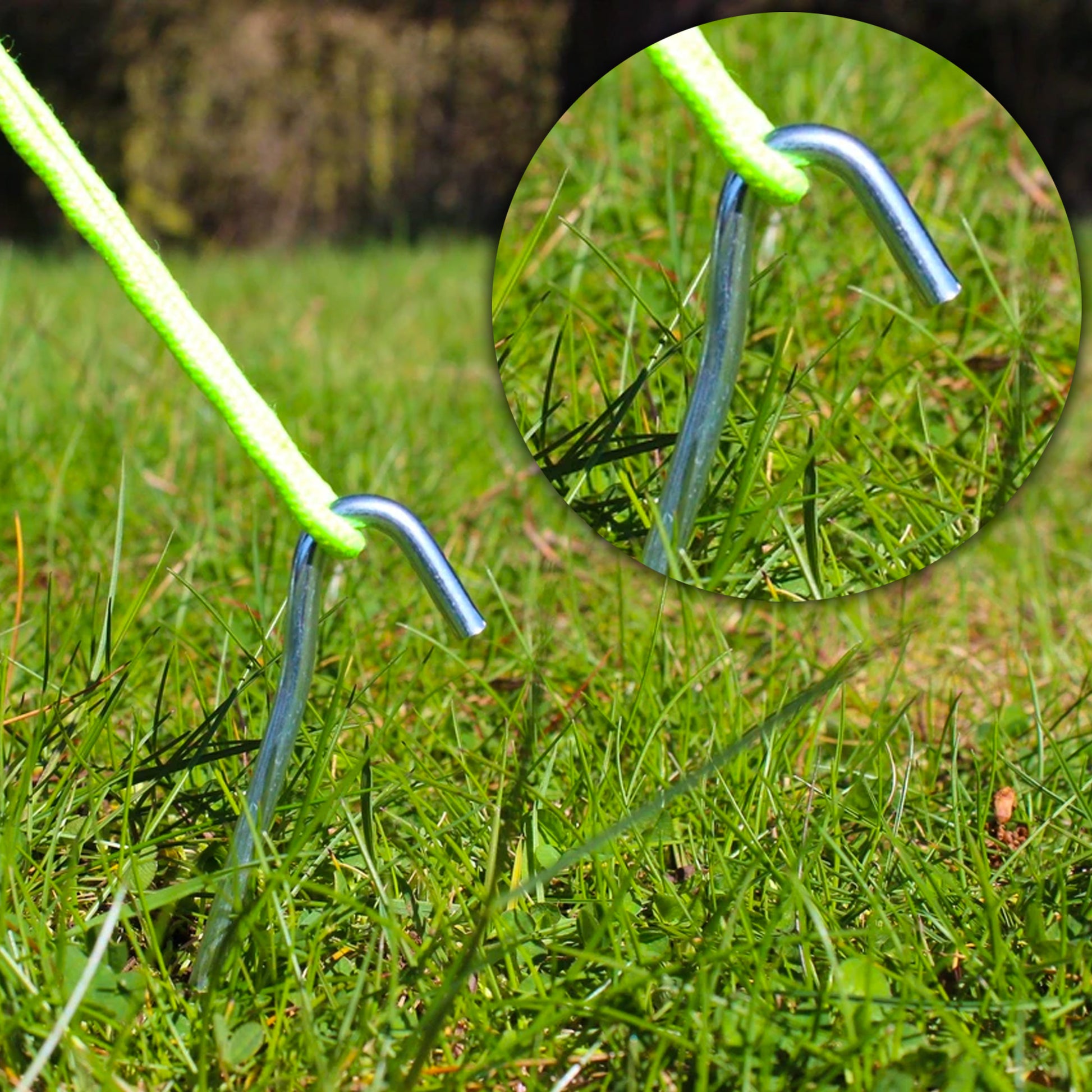 GroundMaster Galvanised Tent Pegs are the ideal piece of hardware to use for many outdoor activities. The heavy-duty galvanised steel gives them a durability that is unrivalled and guaranteed to give you a long-lasting piece of equipment. Being supplied at 9” (240mm), these pegs can be used for placing tarpaulin down, securing a tent, football net or gazebo, plus many more helpful uses. They can be easily inserted into the ground with minimal fuss, providing plenty of extra security to the item you are looking to place down.