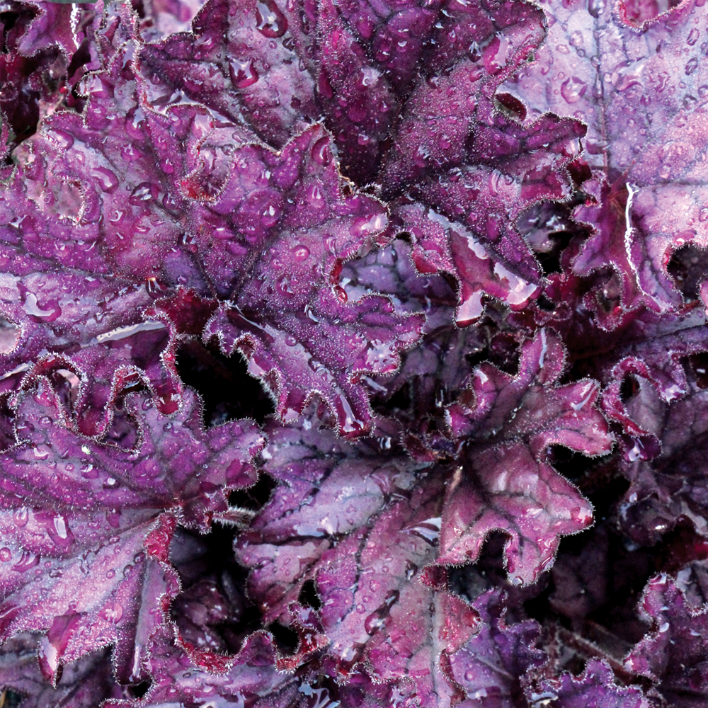 Forever Purple is an exquisite looking perennial with ruffled purple leaves and tiny, bell-shaped purple-pink flowers. Heuchera Forever Purple is a real show stopper, ideal for edging beds and rock gardens.