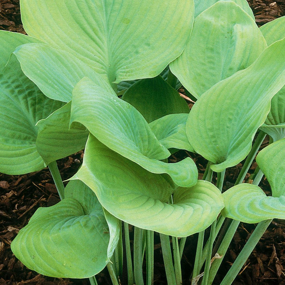 Sum and Substance' is a perennial making a clump of broadly heart-shaped, bright, shining yellow-green glaucous below leaves. Dense racemes of pale lilac, bell-shaped flowers on stems.