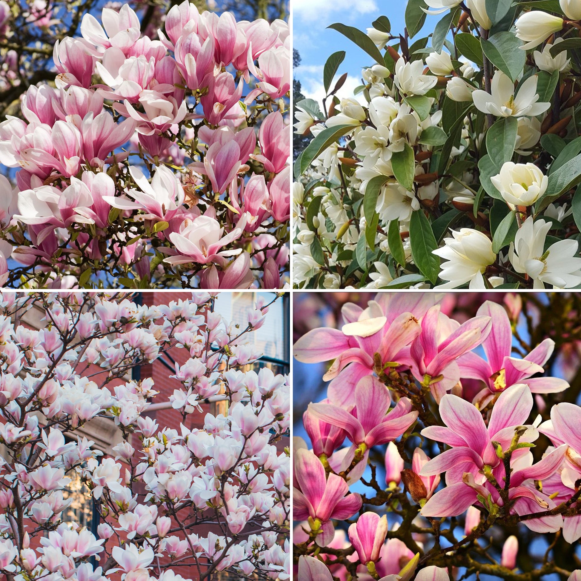 This pack of 4 mixed Magnolia plants can be used to create a striking focal point in the garden for years to come. The appearance of Magnolia flowers marks the end of winter in the gardening world, and these showy spring blossom often emerge even before the plant’s glossy green foliage.