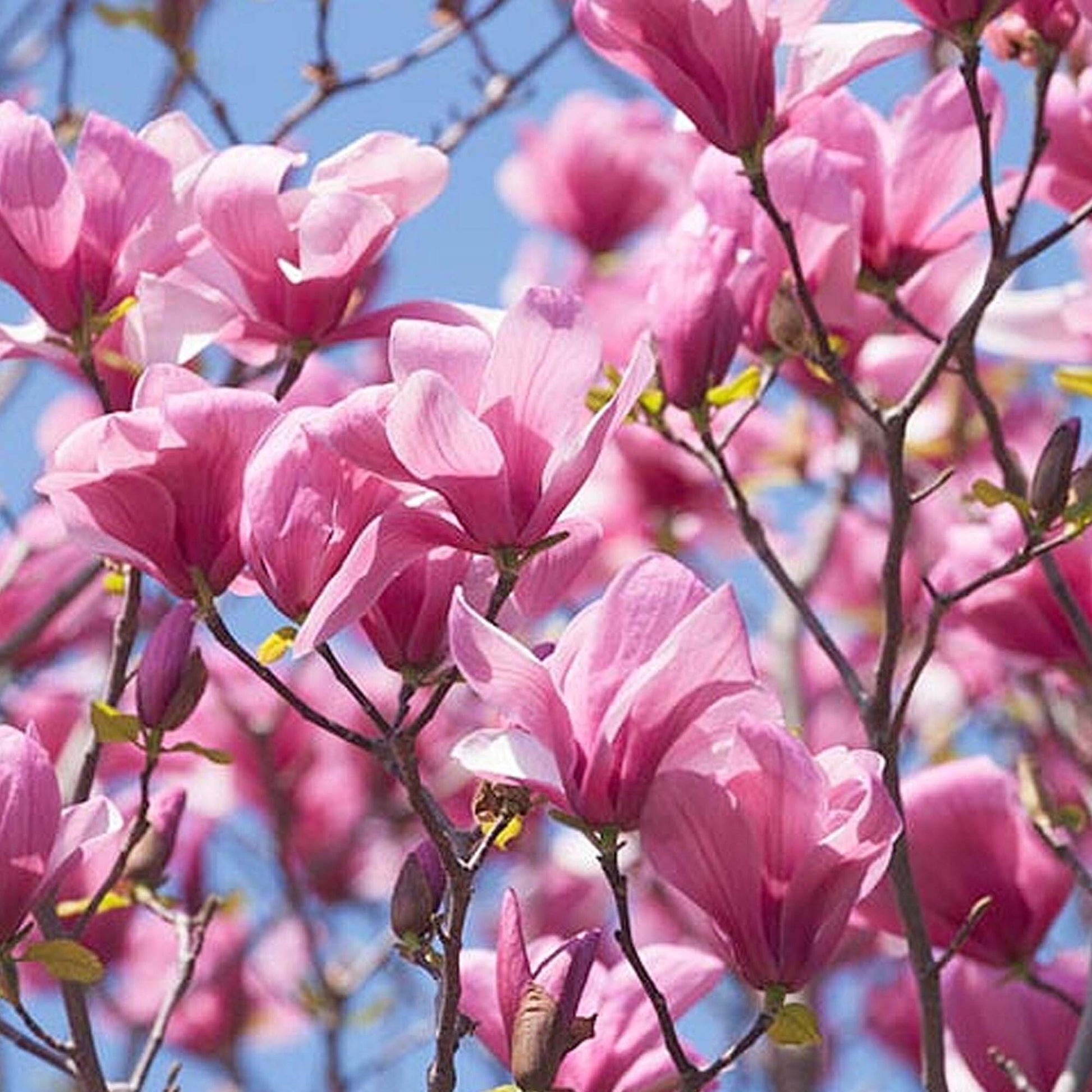 Magnolia Galaxy is a lovely cross between Magnolia liliiflora and Magnolia sprengeri ‘Diva’ that brings forth a stunning mid spring display with its large, showy flowers. The dark pink blossoms will emerge from deep purple buds and appear in abundance, against a backdrop of elegant, slender branches with unparalleled elegance.