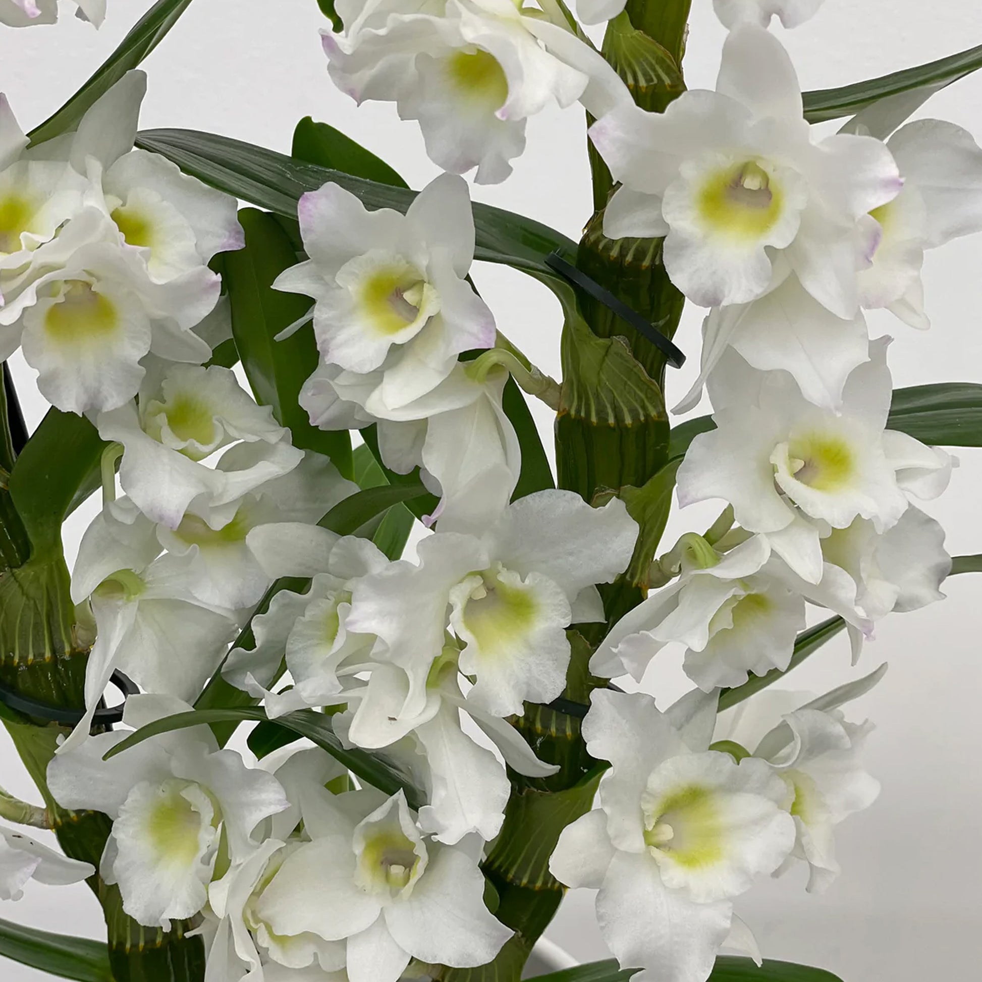 This beautiful orchid's glossy green foliage establishes a base for the 2 branches that emerge and produce 18+ flowers at any one time. The blooms last up to 8 weeks, at a time when most other plants are still only beginning to emerge from their dormant period.