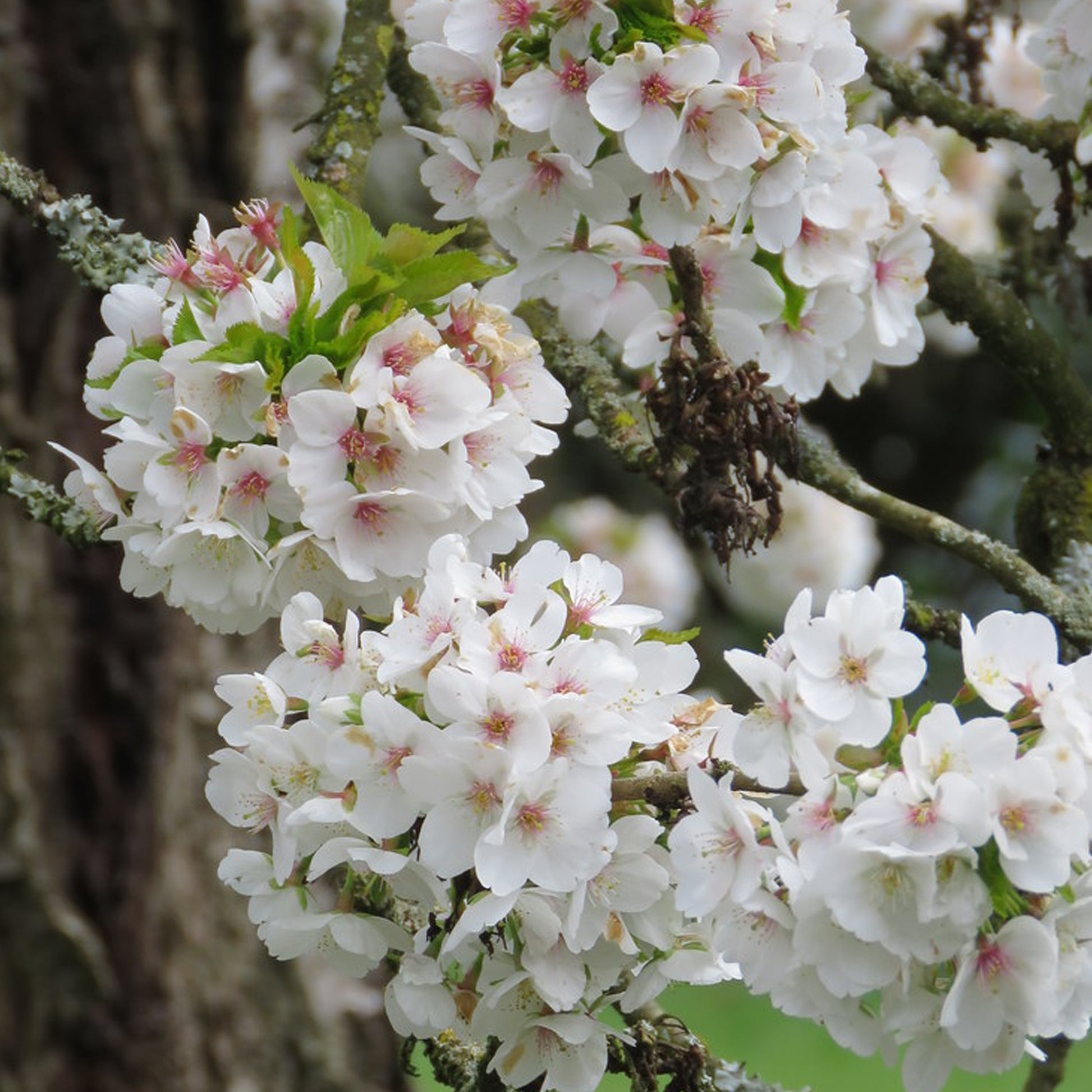 Prunus Umineko is a medium to large-sized hardy tree, with an upright growing habit. The tree produces large, light-green leaves that, in Autumn, provide stunning foliage interest, displaying vibrant shades of orange, red and purple. In spring, Uminkeo bears masses of large, single, white flowers with pale pink centres.