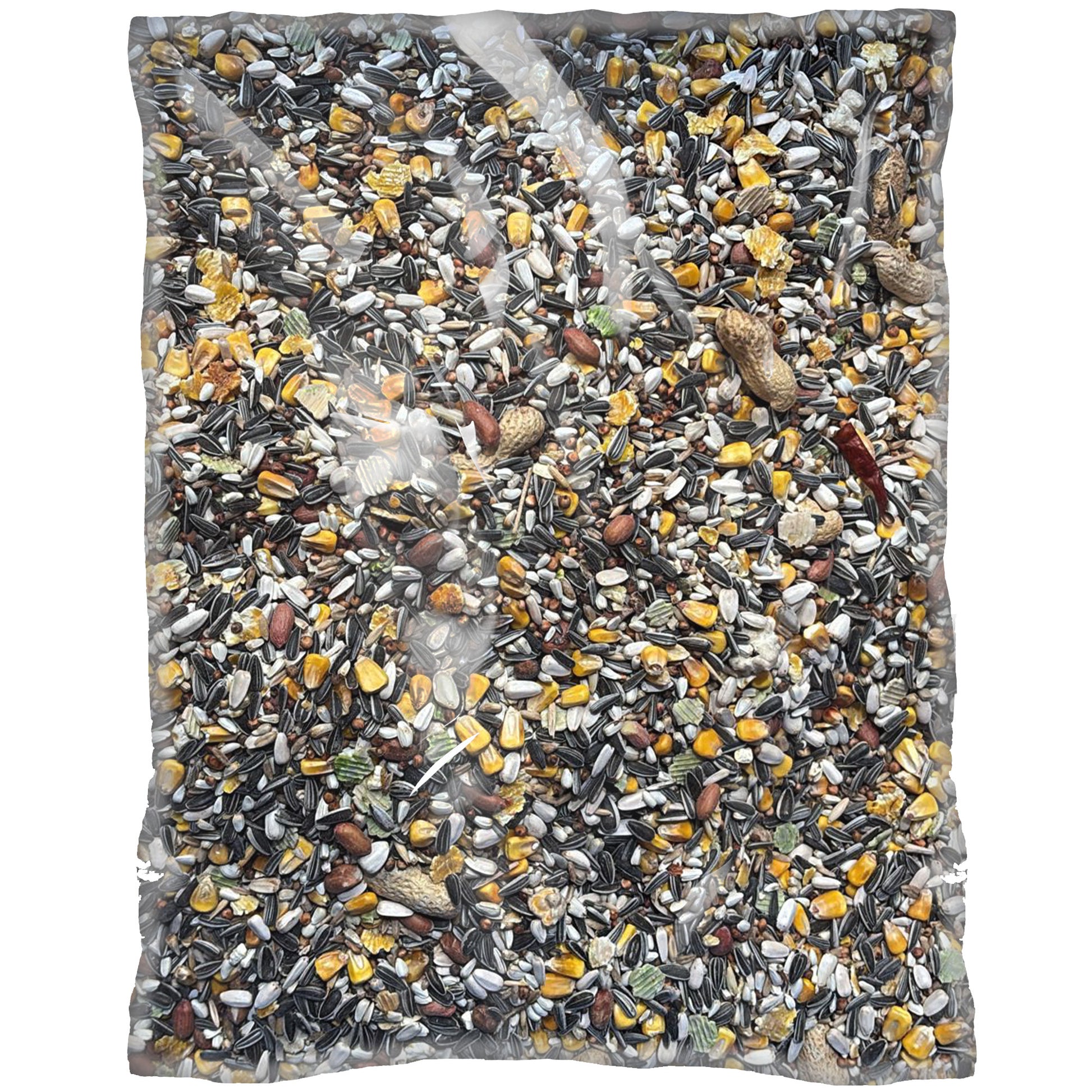SQUAWK Parrot Food Mixture is made to an enhanced formula, including the following ingredients: Striped and white sunflower seed with safflower seed, whole maize, whole oats, pale skin peanuts, monkey nuts, pine nuts, chillies, flaked maize, flaked peas, puffed maize, puffed wheat, naked oats, buckwheat, and red dari.