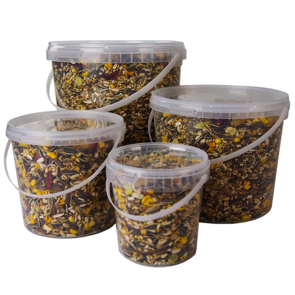 SQUAWK Parrot Food Mixture is made to an enhanced formula, including the following ingredients: Striped and white sunflower seed with safflower seed, whole maize, whole oats, pale skin peanuts, monkey nuts, pine nuts, chillies, flaked maize, flaked peas, puffed maize, puffed wheat, naked oats, buckwheat, and red dari.