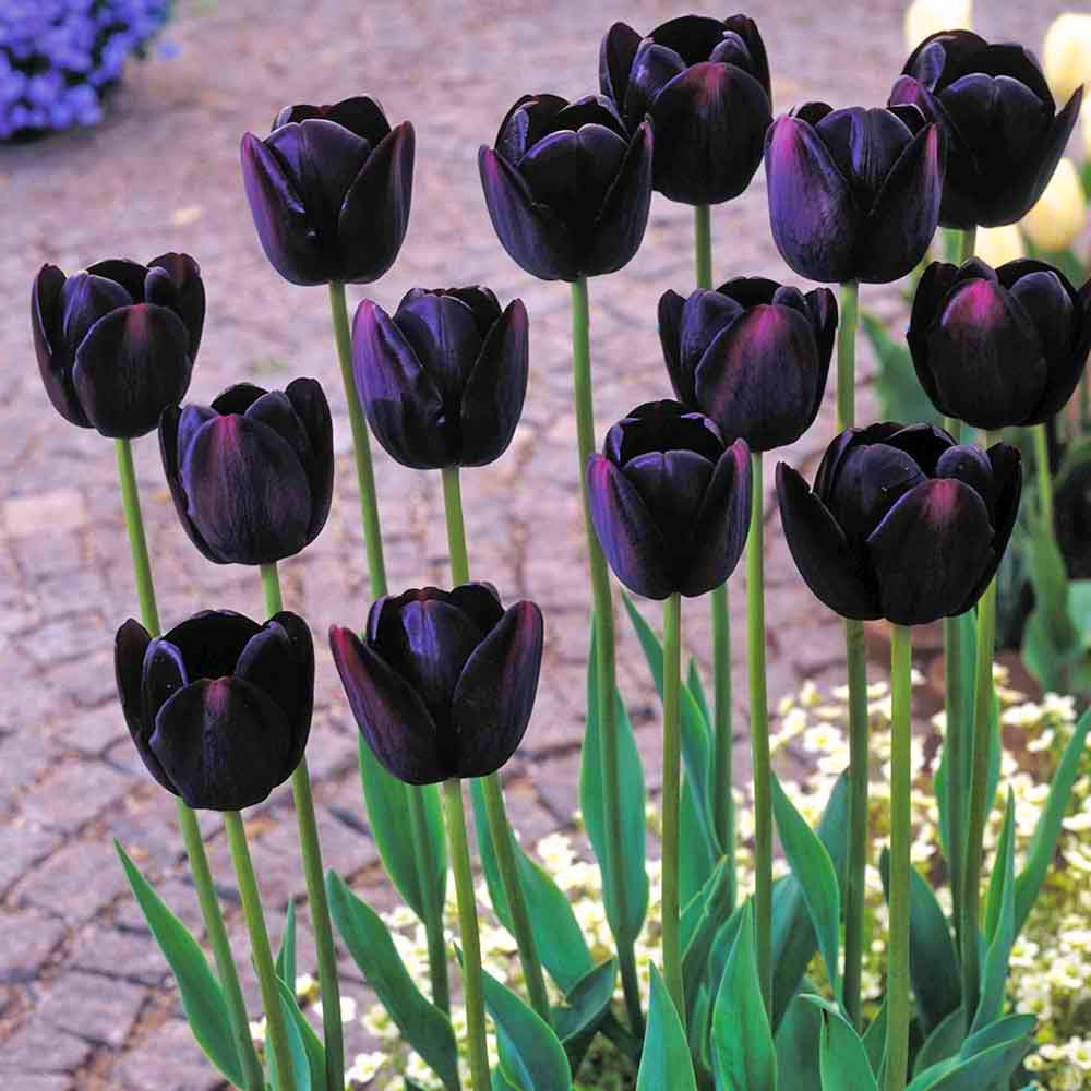 Queen of Night is a famously dark Tulip. It will look amazing planted beside deep purple varieties such as Recreado, as this will bring out the complexity of its dark shade, or equally with a contrasting choice such as Alabaster to really highlight the dark tones. We recommend planting beside other single late tulip varieties, or choosing your favourites dark varieties and planting a statement border of dark, luxury colour. Choose a sunny location where possibly, and plant in well-drained, fertile soil.