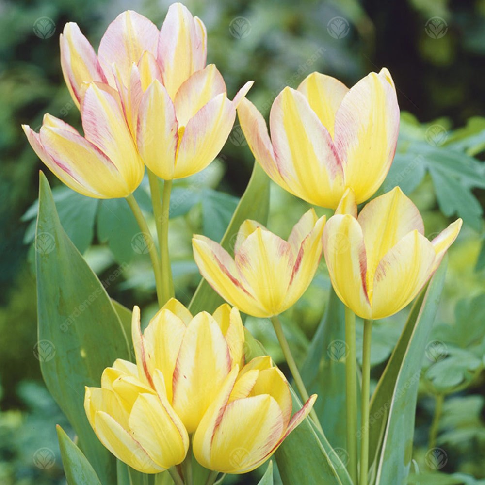 Antoinette is a part of division 5, Single Late Tulips and sometimes classified as a division 16, Multi-flowering Tulip. Multiple flowerheads, up to 4-5 blooms, form on a single stalk and produce an electric yellow bloom that changes colour with maturity. Margins start with a light pale yellow to pale yellow and transform into bright shades of ever-increasing pink which eventually consume and transform most of the petal into brilliant pink shades.