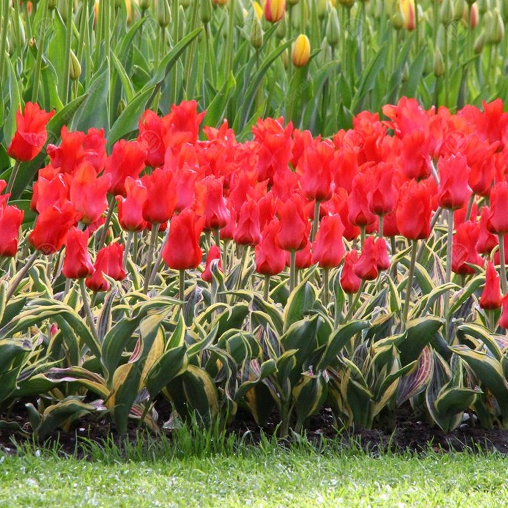 Beautiful blooms and incredibly variegated foliage, Fire of Love has sturdy stems and does well in rockeries or at the front of beds and borders, also suitable for planting in containers and pots. Enjoy these smaller-sized plants with big beautiful blooms that arrive in mid to late spring.