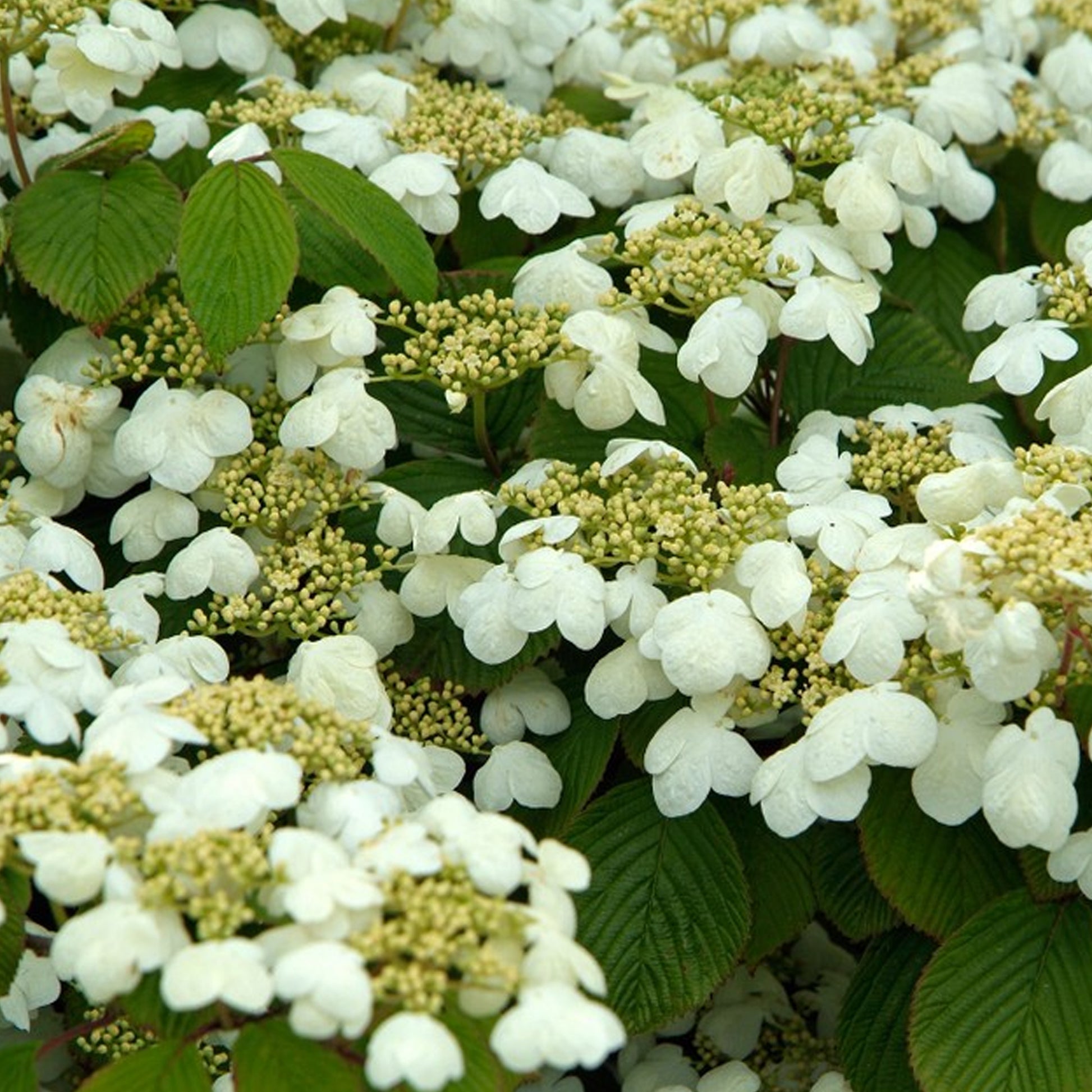 Viburnum Mariesii is a deciduous shrub with neatly veined, dark green leaves that surrounds the beautiful white budding and flowering in Spring. In terms of the foliage, it will consist of a green shade in both Spring and Summer, before taking on a purple hue in Autumn. Also in that latter season of the year, black fruit will be produced, adding another visual aspect to the plant which ensures it is an eye-catching addition to the garden. When caring for Viburnum plants, you should plant them in moist, well-drained soil and keep them positioned in full sunlight. Overwatering must be avoided, with a high requirement being placed on regular watering when the shrub is first planted or in longer periods of drought.