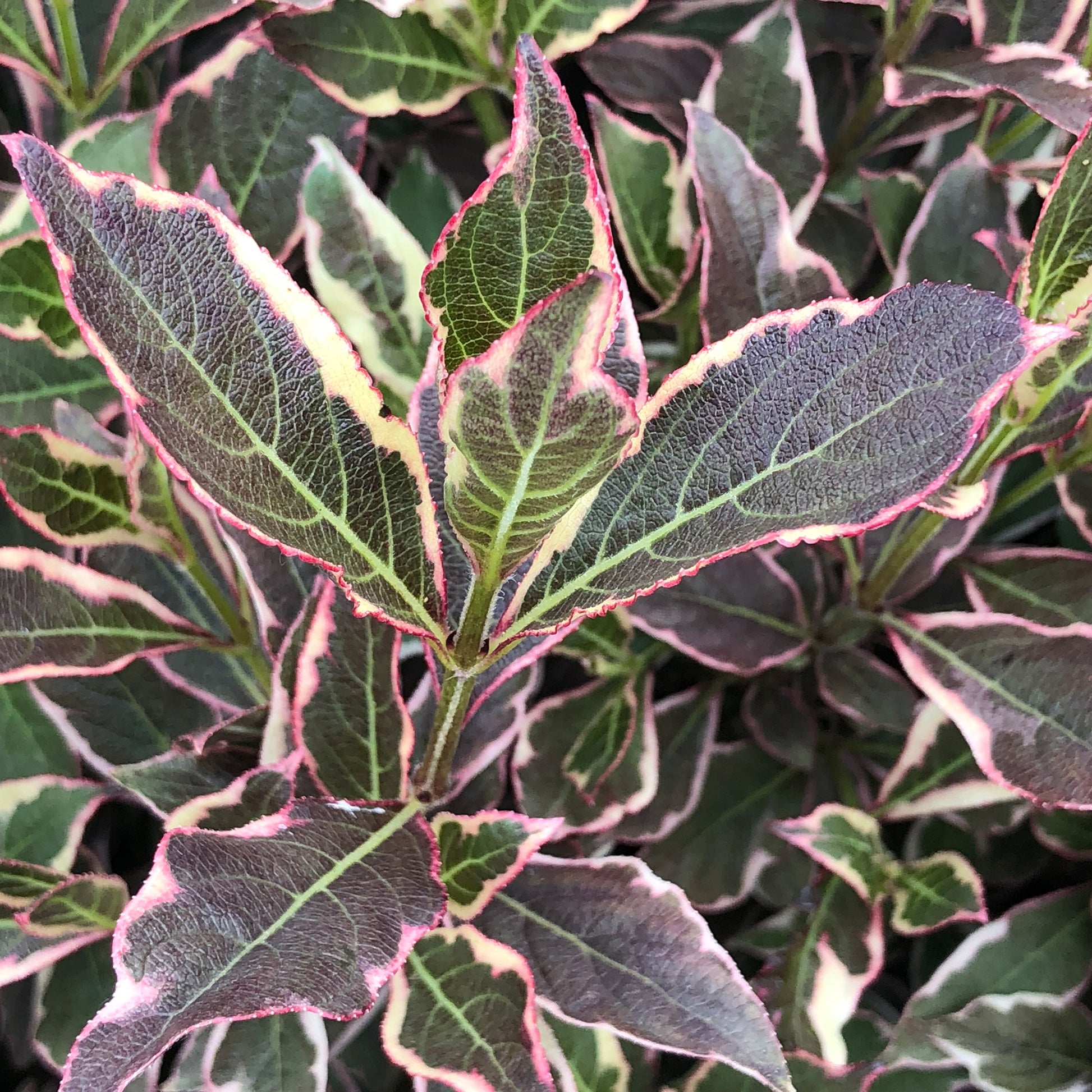 Weigela All Summer Monet is a deciduous shrub with variegated foliage throughout. The green and cream shades creates this look, especially due to the sheer amount of leaves that are present because of the compact growth habit this shrub has. Purple flowers will then begin to show from late Spring into Summer, with this feature only adding to the visual appeal of the plant, making it have a great impact in the garden it is placed in. Planting this in moist, well-drained soil and placing it in full sunlight is recommended. The plant will be drought tolerant to an extent, but it will prefer regular watering, especially in drier conditions.
