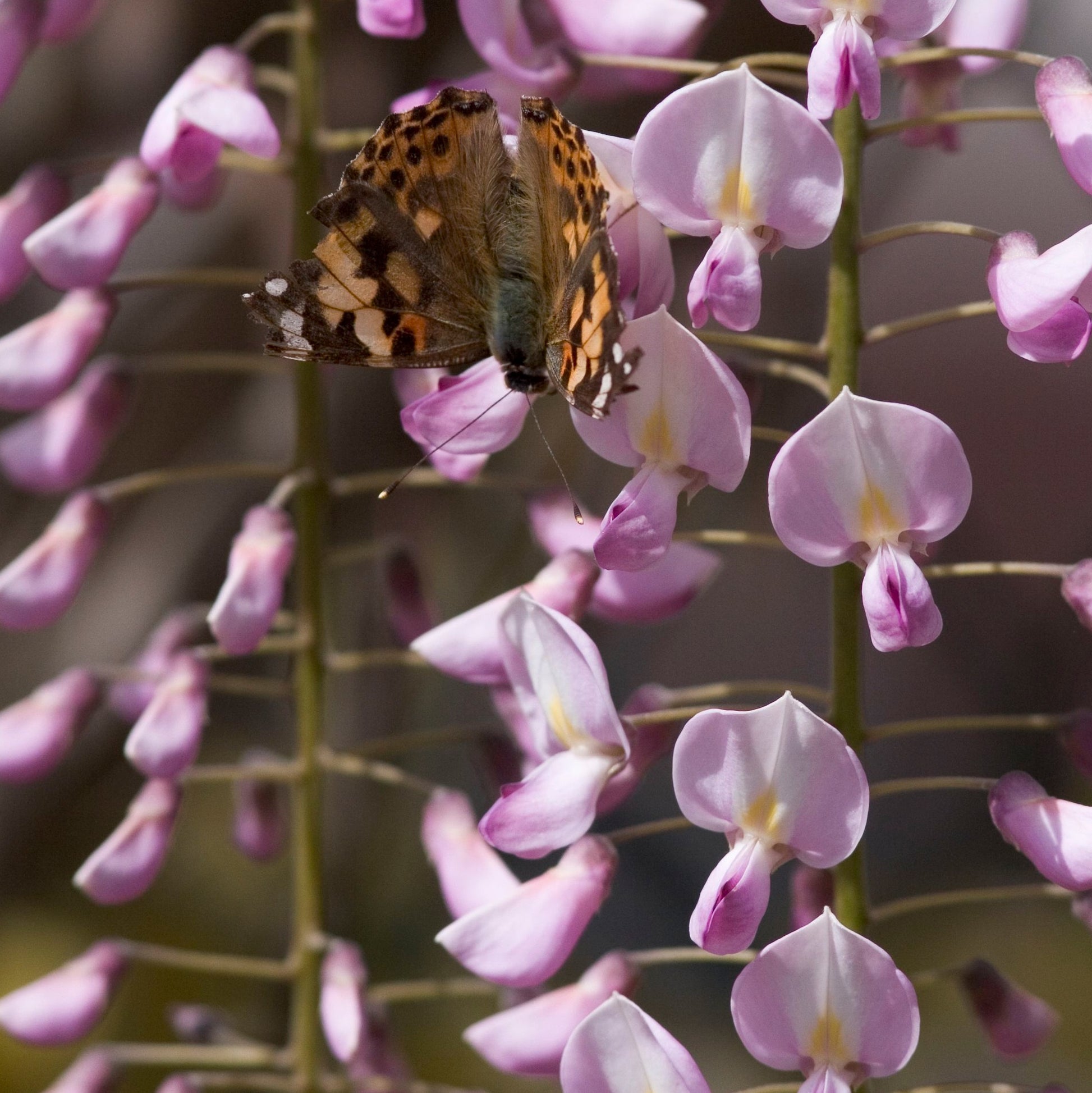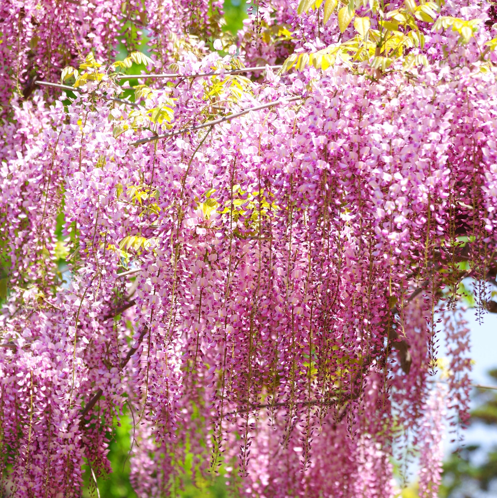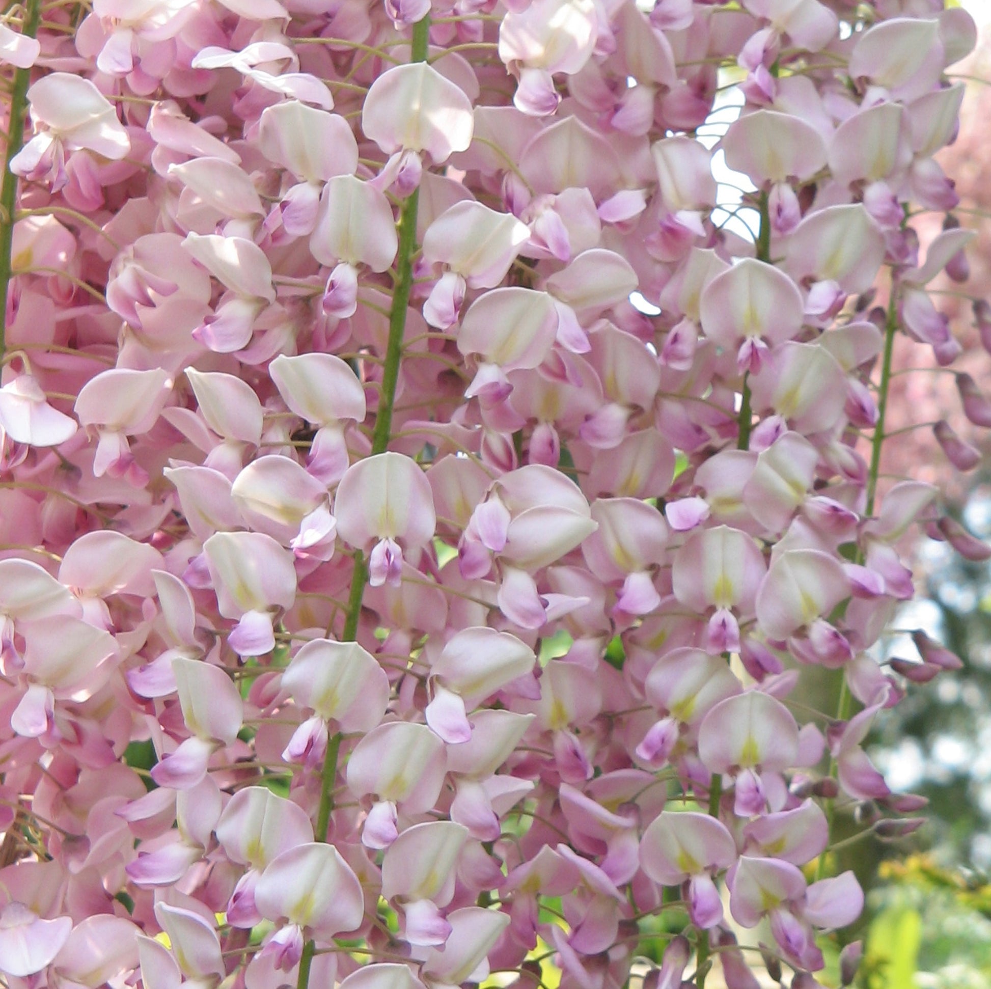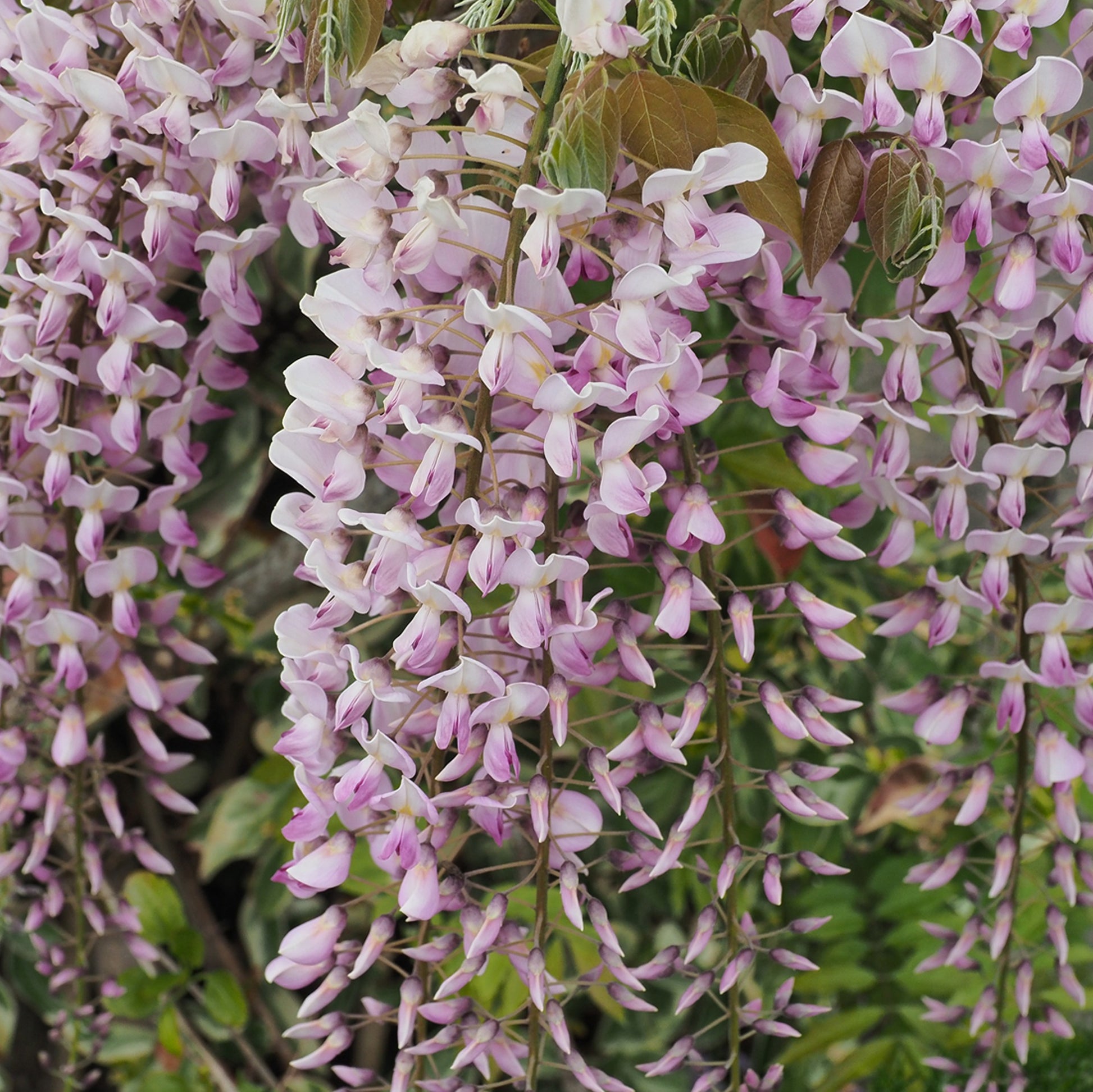 Wisteria Rosea is an attractive strong climbing deciduous shrub. Well known for its dense green foliage and revered for its excellent fragrance, the twining stems produce an abundance of drooping racemes that are around 60cm in length, these are packed with pea-like pale rose flowers sporting purple tips. These flowers begin to appear in late spring and bloom from the base of each cluster to the tip, they are soon followed by attractive bean-like pods which ripen in late summer and can last right through into winter. Train your plants to climb a trellis and they will provide a wall of colour during spring and summer year after year.