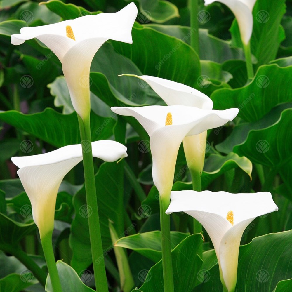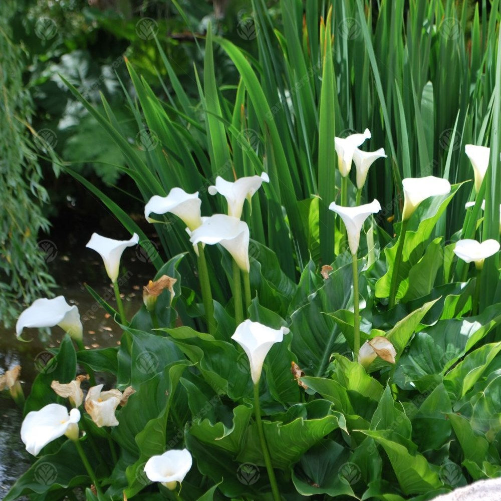 Zantedeschia Aethiopica is also a viable option for woodland garden settings and planting in beds and borders that are kept well-watered. Bloom times can vary but is able to produce throughout the late spring through the autumn seasons.